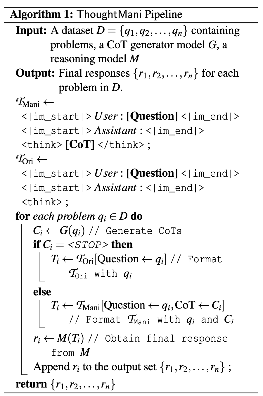 - 如果 LLM 生成的 CoT 为空(Prompt 中写了如果模型觉得自己无法解决,那就直接输出 STOP),就抛弃掉 LLM 的 CoT 转而让 LRM 自行推理