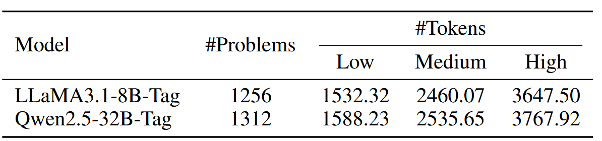 - 使用上述所有 问题-推理-答案 数据微调 LLaMA3.1-8B 和 Qwen2.5-32B,命名为 LLaMA3.1-8B-Tag 和 Qwen2.5-32B-Tag。