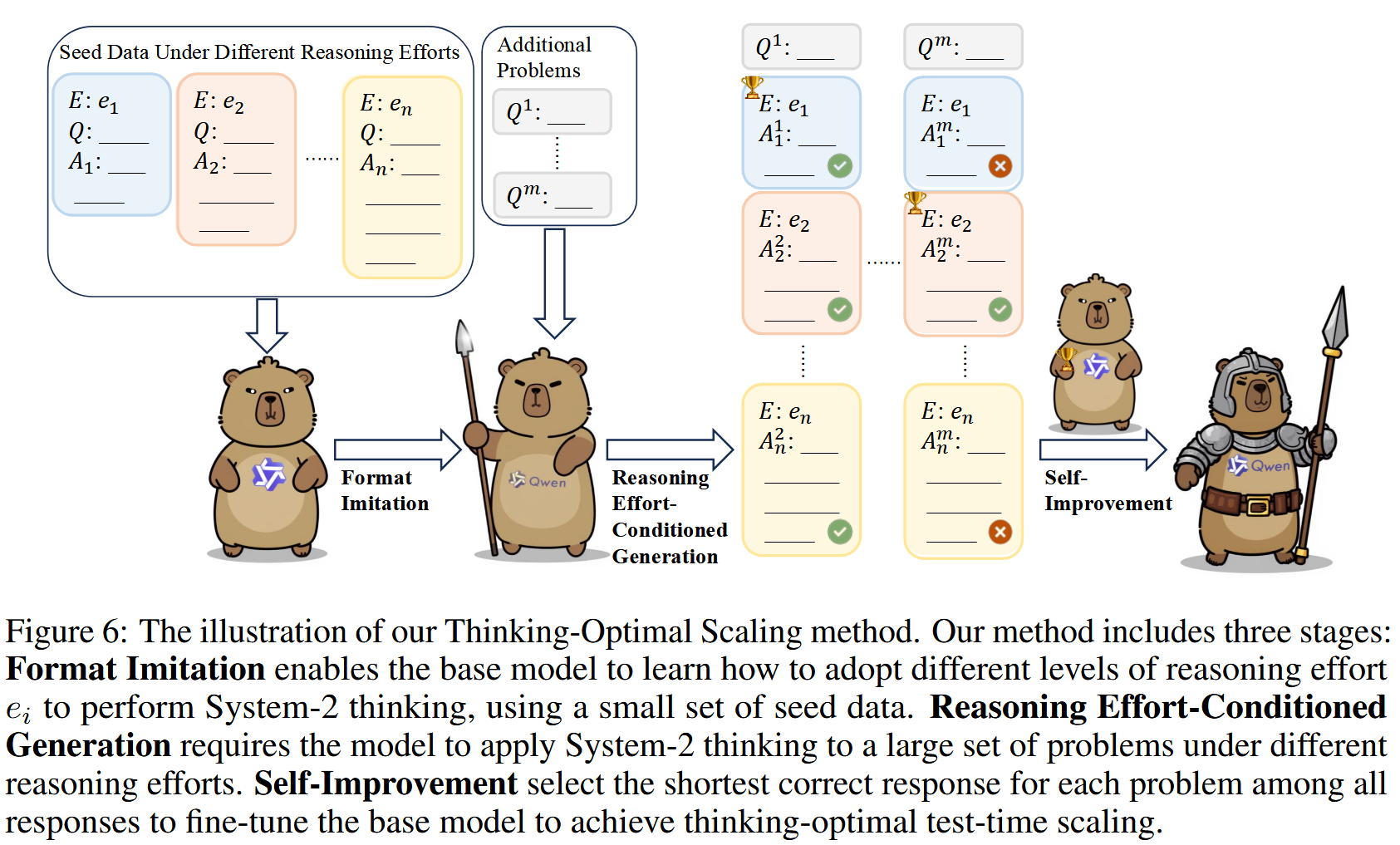其中 π 是 tag 模型(使用上述数据集微调出的模型)的输出分布。接着在所有的 Pa 的 y 中选择正确的且最短的 y,作为 Pa 的 thinking-optimal response,基于此构建了一个数据集