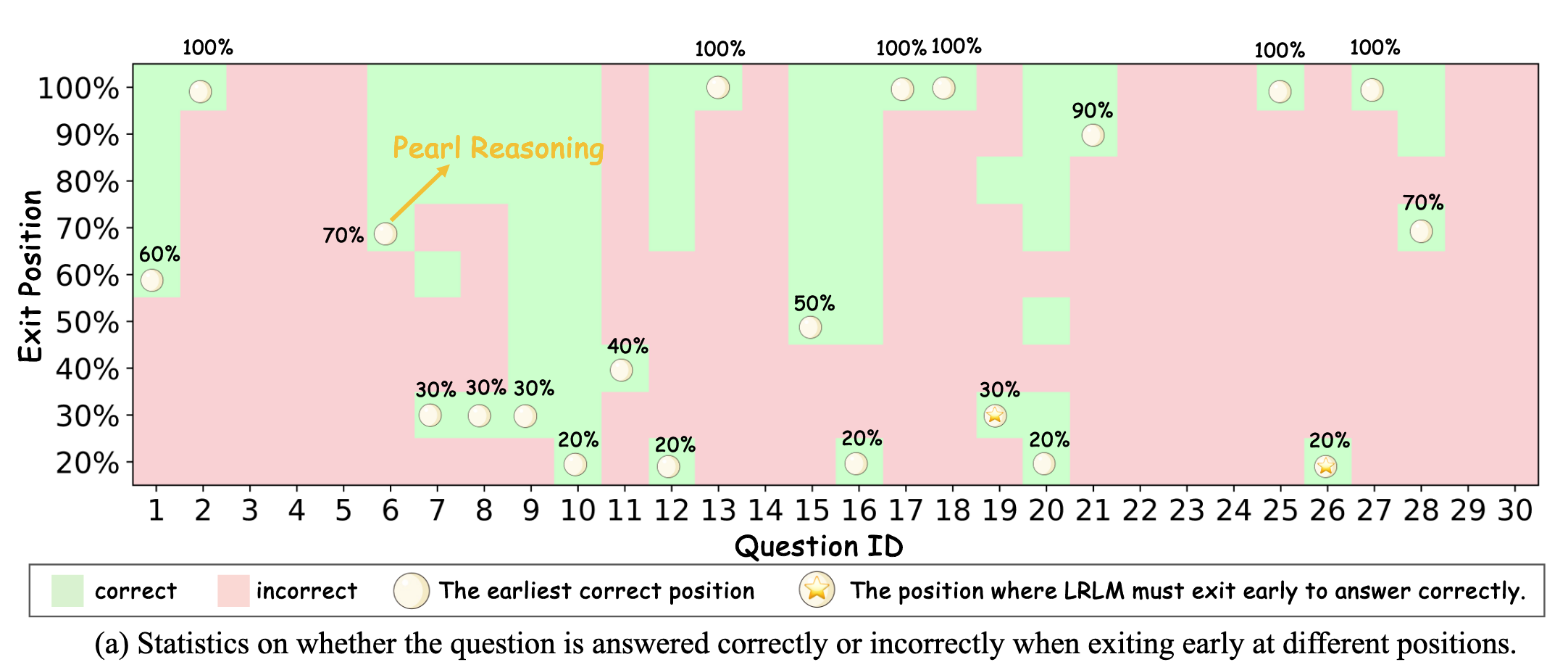 识别出推理中信息刚刚好充足的关键点(Pearl Reasoning),并迫使模型在这一步停止思考转为开始回答,提出三步走方法来识别关键点:
