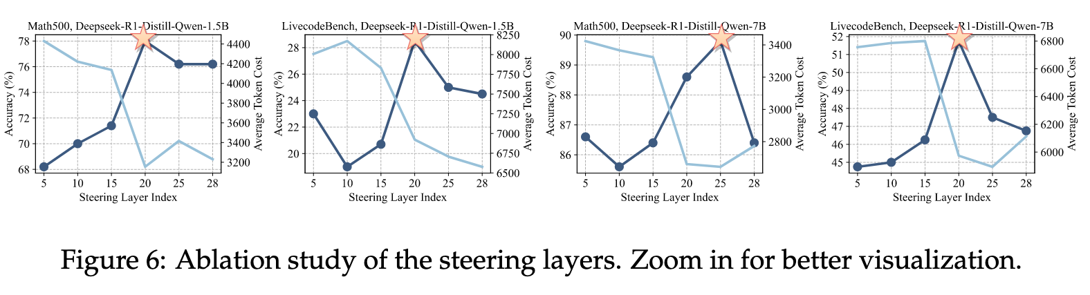 模型:Deepseek-R1-Distill-Qwen-1.5B(干预第 20 层),Deepseek-R1-Distill-Qwen-7B(干预第 20 层),QwQ-32B-Preview(干预第 55 层)