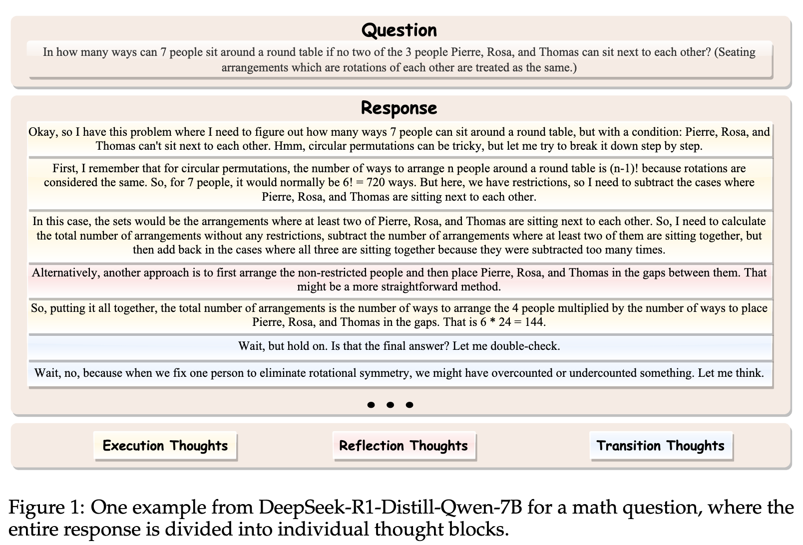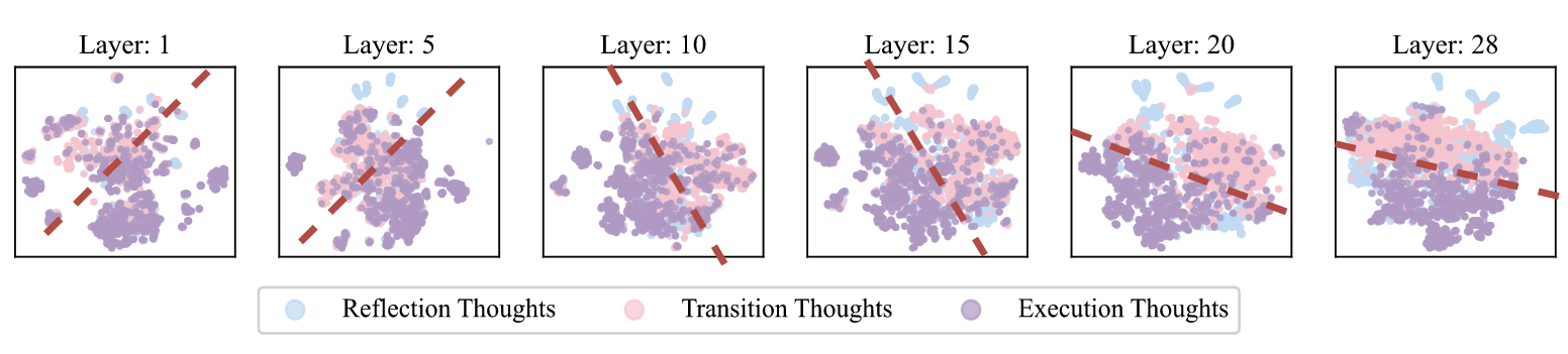 - LLM 按照执行、反思和过渡思维进行 think,且这些 thought 在隐藏状态中是可以被分离出来的
