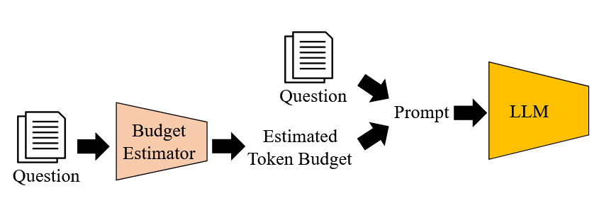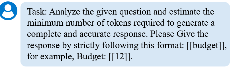 给定一个问题,TALE-EP 首先使用预算估计器估计 token 预算。然后,它通过将问题与估计的预算相结合,创建一个 token 预算意识的 prompt。最后,将提示输入到 LLM 中,生成答案作为最终输出。默认 llm 就是 budget 估计器。